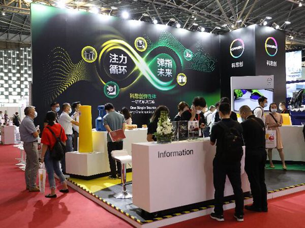 走到淄博华天橡塑科技有限公司展台,各种颜色的聚氨酯弹性体产品琳琅满目。“我们这次带来了TPU、CPU、聚酯多元醇、铺装系列多种新产品。目前公司在国内率先研发的产品已经超过200个,涵盖CPU、TPU、塑胶铺装材料、聚酯多元醇等系列,供应国内外3000多家客户,多个单项产品还是国内首次研发并投放市场。”华天公司副总经理田亮介绍说。