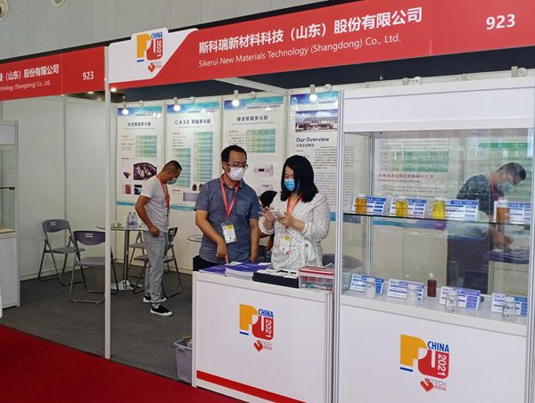 在环保低碳风潮下,生物基聚氨酯材料同样广受关注。斯科瑞新材料科技(山东)股份有限公司展出了植物为主要原料,用可再生的多种植物油与不同醇类化合物合成的多种植物基多元醇。公司董事长韩志成表示,植物油经过改性,含有羟基的数量在很大范围內可调,因此在聚氨酯中具有广泛的应用前景,可以用来生产胶黏剂、软泡、涂料、半硬泡、硬泡等聚氨酯材料。尤其是100%植物基硬泡组合料更是业界的一大突破,斯科瑞的植物基多元醇一经面市就供不应求,公司目前在积极扩大产能,位于山东郯城的年产5万吨植物油多元醇项目正在建设中。